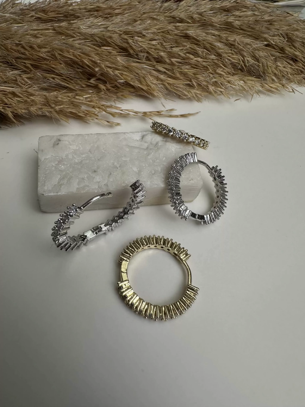 Altın Kaplama Taşlı Minimal Halka Küpe