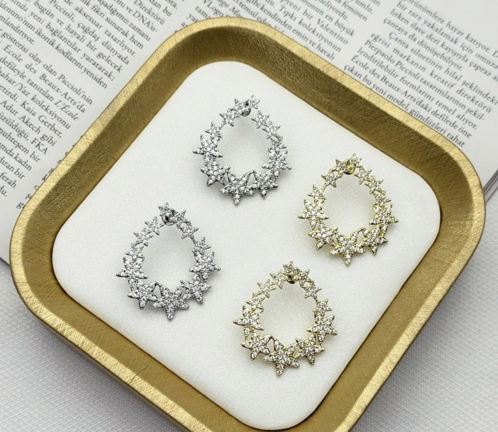 Altın Kaplama Yıldız Taşlı Tasarım Küpe