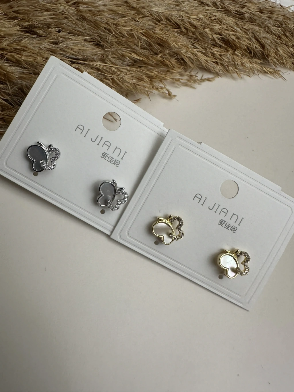 Mineli Gümüş Kaplama Taş Sallantılı Kelebek Küpe