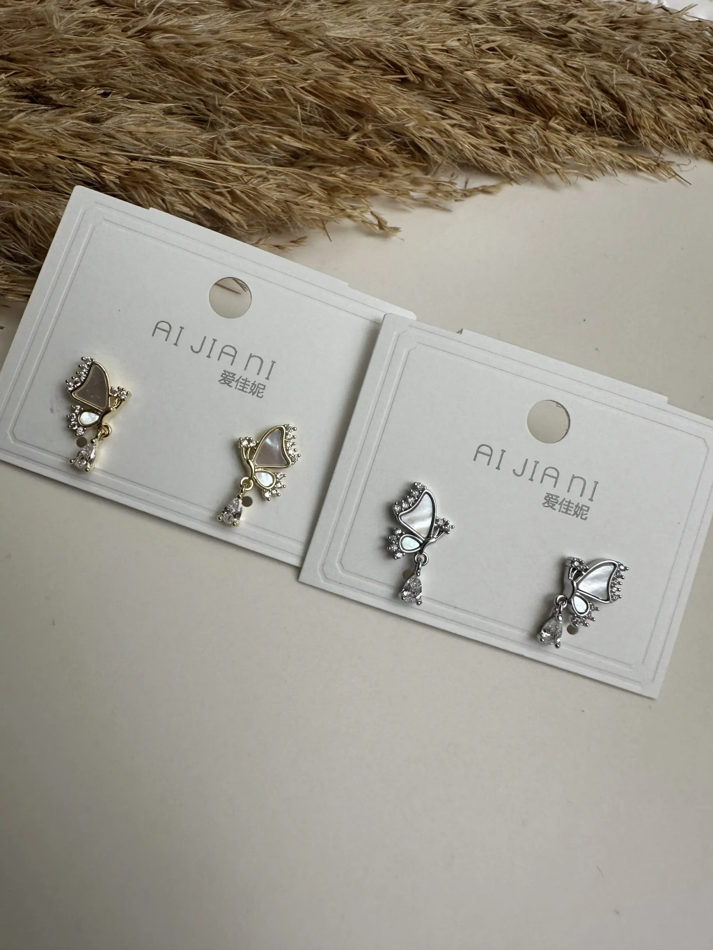 Mineli Gümüş Kaplama Taş Sallantılı Kelebek Küpe