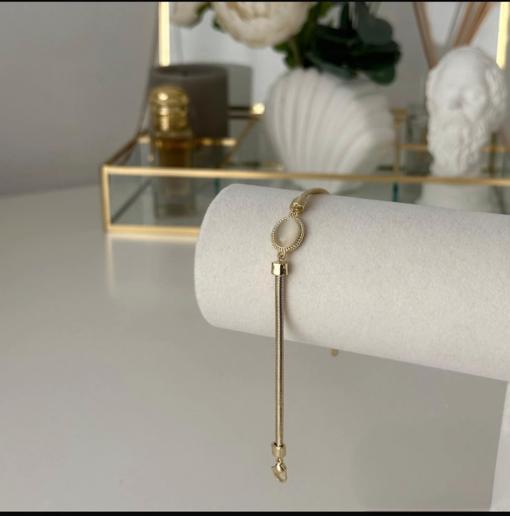 Oval Plaka Altın Kaplama Bileklik