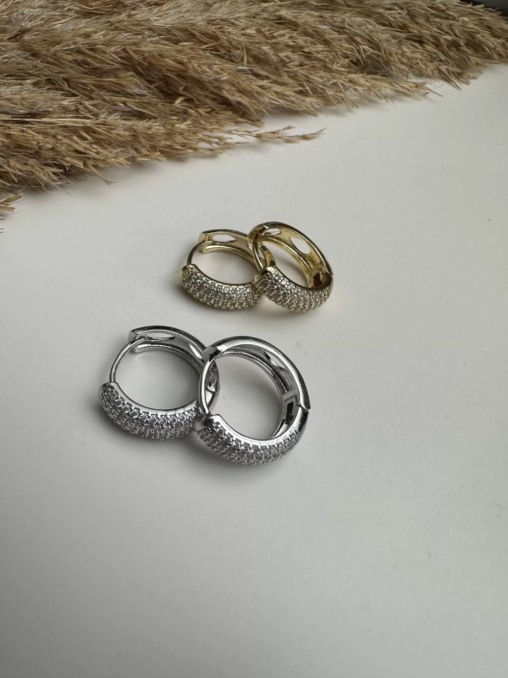 Altın Kaplama Taşlı Minimal Halka Küpe
